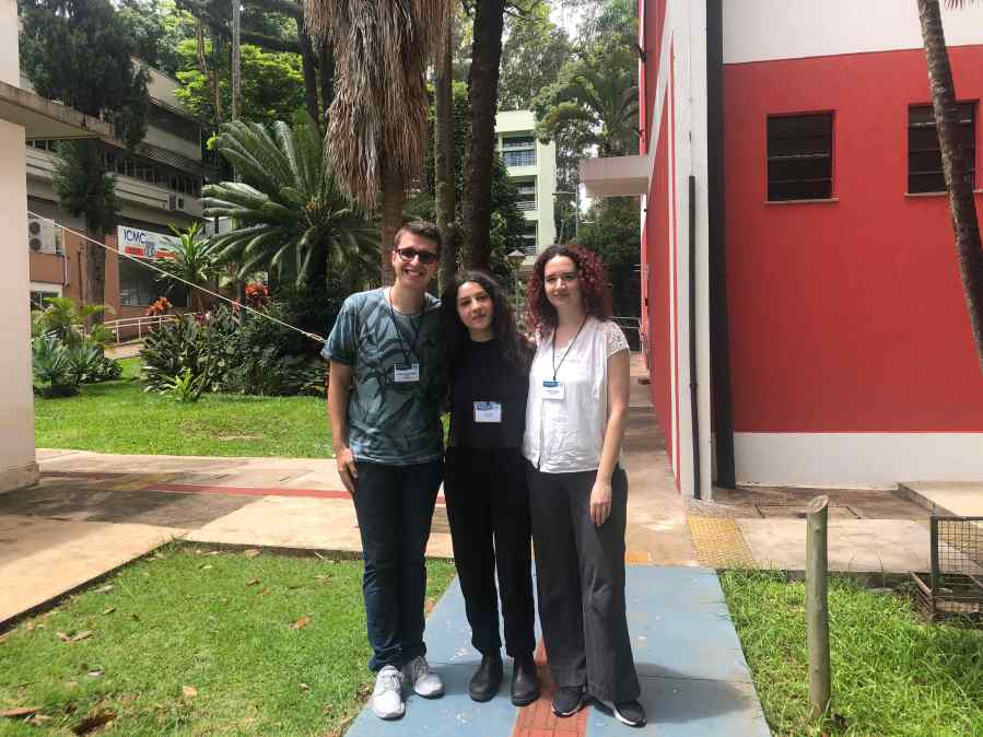 Serena Federico (UGent), Marianna Chatzakou (Imperial College London), and Wagner Augusto Almeida de Moraes (Curitiba Brazil) at the ICMC summer meeting on differential equations in Sao Carlos, Brazil, 3-5 February 2020. All three are working on different exciting problems related to the analysis on Lie groups!