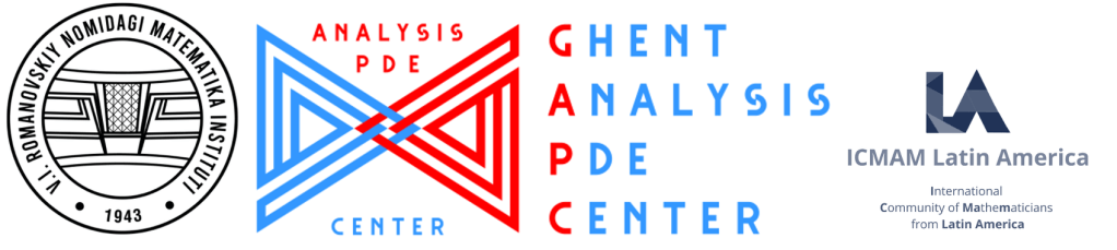 This conference is organized by the Ghent Analysis and PDE Center in cooperation with V.I.Romanovskiy Institute of Mathematics, Uzbekistan Academy of Sciences and International Community of Mathematicians from Latin America.