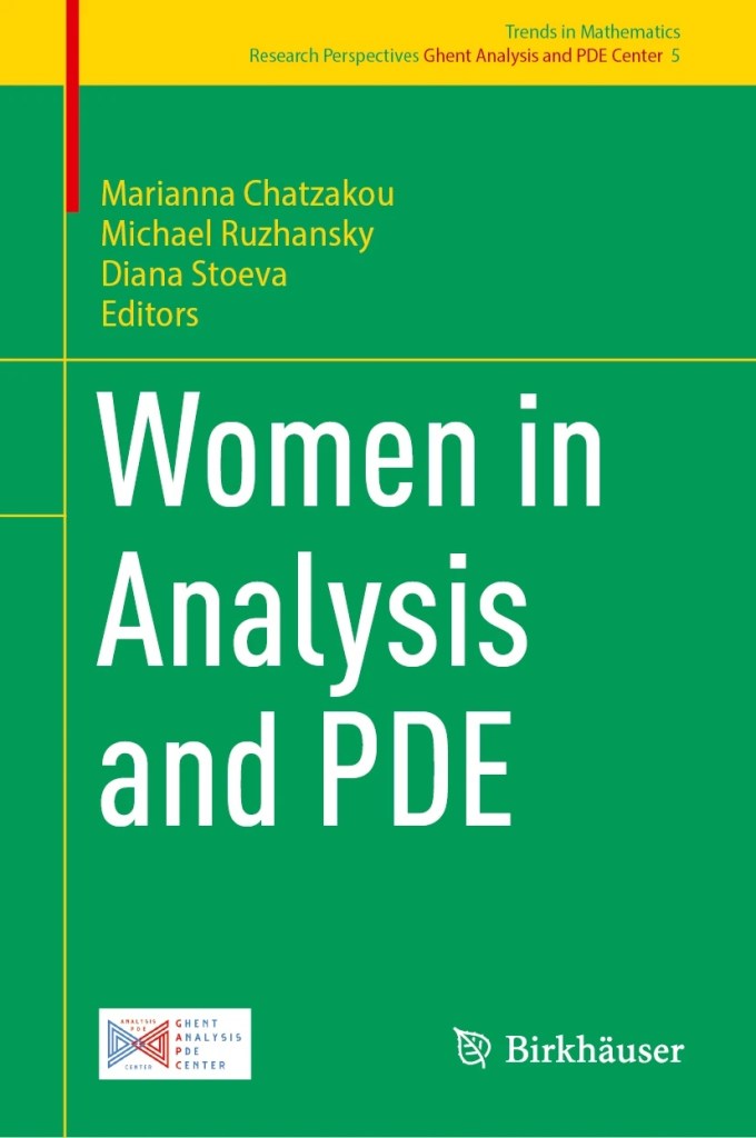 Chatzakou M., Ruzhansky M., Stoeva D. (Eds.) Women in Analysis and PDE. Extended Abstracts of the 2023 GAP Center Summer School, Research Perspectives Ghent Analysis and PDE Center, Trends in Mathematics, Birkhäuser, 2024. x+310pp. link